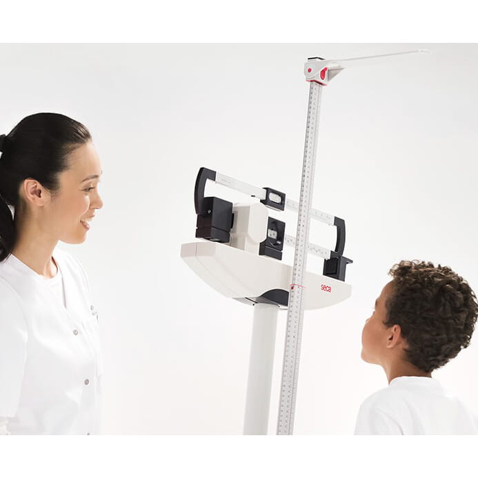 Ten wysuwany wzrostomierz można zamontować do wielu wag kolumnowych seca.